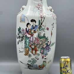 Antique Chinese Porcelain Republic Period Famille Rose Vase 42cm Lady Scene $200Boca Raton, FL