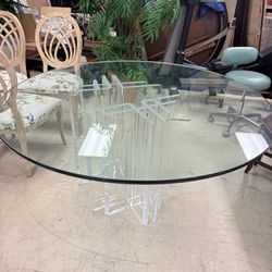Vintage Hollywood Regency style 60” dining table featuring a sculptural, clear acrylic$295Fort Lauderdale, FL