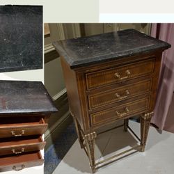 Vintage Petite Marble Top Louis XVI Three Drawer Nightstand $149Palm Beach, Florida