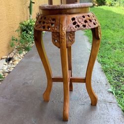 Antique Rosewood Chinese Hand Carved Wood & Mable Plant Stand Great Condition $75Oakland Park, FL