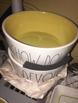 Rae Dunn Dog bowl 8” “Chow Down” yellow interior! New$35Sunrise, FL