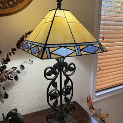 Tiffany Style Table Lamp Mission 22″ Tall Stained Glass Ivory Brown Antique Vintage Light$195Fort Lauderdale, FL