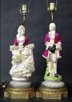 Vtg Pair Dresden Continental Male Female Figural Victorian Porcelain Table Lamps$204Lake Worth, FL