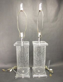 Pair of Vintage Gilbert New York Lucite Acrylic & Crackle Glass Table Lamps 34"$159Palm Springs, FL