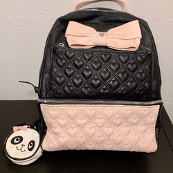 Betsey Johnson Quilted Hearts Bow Panda Leather Backpack Insulated Lunch Bag. See Pics $35Tamarac, FL