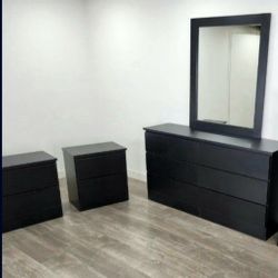 Black Dresser Whit Mirror And Nightstands ⚫️ Cómoda Con Espejo Y Mesitas De Noche Negras $390Oakland Park, FL