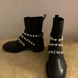 Zara Women Winter Ankles Boots Leather Black Faux White Pearls EU39 US 8.5-9 NEW$110Oakland Park, FL