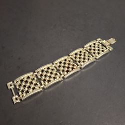Retro Gold Plated Wide Linked Panel Bracelet With Basket Weave Design Snap Lock 7"L X 1 3/8"W$7North Lauderdale, FL