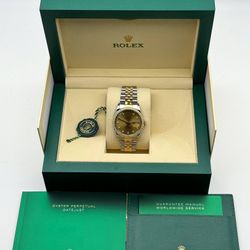Rolex Datejust 36mm 18k yellow gold stainless steel 16013 champagne diamond dial natural diamond yellow gold bezel 2CTW jubilee bracelet box tag books$6,750Boca Raton, FL