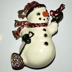 Frosty The Snowman ⛄ Aurora Borealis Crystals On Shovel Coal Buttons Eyes And Smile Black Crystals. Red Cardinal, Red &Gold Scarf, Red Gold& Green H $35Deerfield Beach, FL