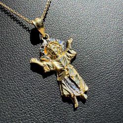 Jewelry 14k solid yellow two tone Devine Child Crosses Religious Pendant charm$400Boca Raton, FL