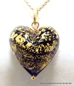 14K Yellow Gold Murano Venetian Glass Puffy Heart Charm Pendant By MA (MICHAEL ANTHONY) Excellent , Pre-owned condition . Pendant ONLY $149Boca Raton, FL