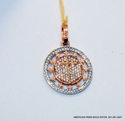 18K Pink Gold Cross Charm Round Pendant with clear stones$450Boca Raton, FL