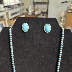 Silver-tone & Faux Turquoise Necklace W/Magnetic Barrel Clasp 19" & A Pair Of Stud Faux Turquoise Earrings Included, Native American Navajo Style $7Fort Lauderdale, FL