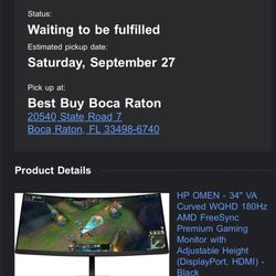 HP OMEN 34c G2 Curved Gaming Monitor – 180Hz WQHD (34”)$350Boca Raton, FL