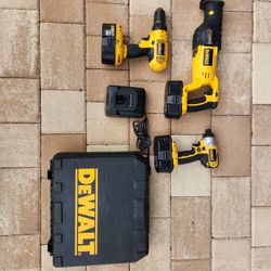 Dewalt 18v - 1/2" Drill, 1/4" Impact Driver, Reciprocating Saw (Sawzall), With Charger (No Batteries) $130Fort Lauderdale, FL