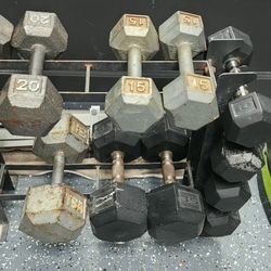 PAIRS OF 15 LB. & 25 LB. RUBBER HEX DUMBBELLS • HEAVIER RUBBER DUMBBELLS ALSO AVAILABLE : 5s 10s 20s 30s 35s 40s 45s 50s 60s 70s 80s 90s $100Deerfield Beach, FL