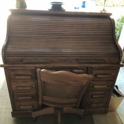 Vintage Oak roll top desk and chair$150Oakland Park, FL