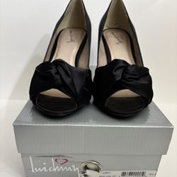 Luichiny Black Satin Open Toe With Bow Kitten Heel Pumps size 7$20Pompano Beach, FL