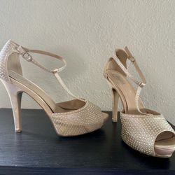 Bedazzled Satin Champagne Candies High Heels $15Pompano Beach, FL