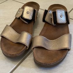 Naot Womens Ashley Sandal Size 39 US 8.5 Gold Leather Slide Low Wedge Cork Shoe$28Boca Raton, FL