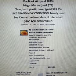 M1 MacBook Air W/ Box And Charger Excellent Condition! $900Palm Beach Gardens, FL