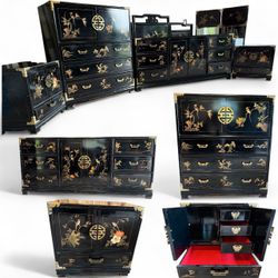 An Oriental 7pc Bedroom Set, Black Lacquered, Hand Painted Tansu Style$1,200Fort Lauderdale, FL