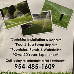 Sprinkler Installation And Repair Pool, Spa Pump Fountains,$1Oakland Park, FL