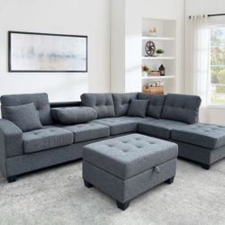 Grey Linen Sofa Sectional With Ottoman- Buy Now Pay later $1,099Fort Lauderdale, FL