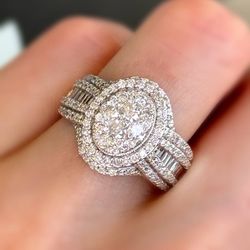 10K Solid White Gold 1.25CTW Natural Baguette & Round Diamond Fashion Engagement Ring Sz6$850Pompano Beach, FL