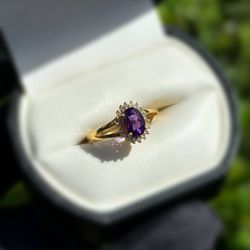 Jewelry 14k solid yellow gold purpurite stone diamonds 1.10CTW ring sz 7.00$230Pompano Beach, FL