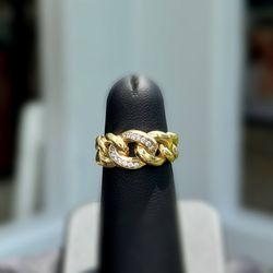 Jewelry 10k solid yellow gold white cz stones 0.20CTW cuban link ring sz 6.00$350Pompano Beach, FL