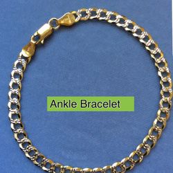 Ankle Bracelet Cuban Style Diamond Cut 5mm Two Tone Gold On Solid Sterling Silver Italy 925 *Ship Nationwide Or Pickup Boca Raton$59Boca Raton, FL