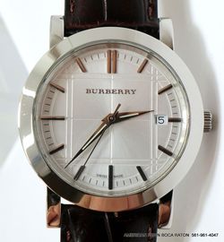Burberry Heritage BU1382 Engraved Silver Dial Leather Band Quartz Watch 38mm Excellent $159Boca Raton, FL