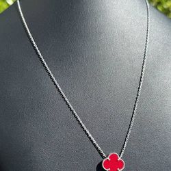 Jewelry 925 sterling silver Van cleef style Red clover shape necklace 20” 1mm$129Boca Raton, FL
