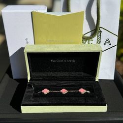18k yellow gold Pink Van cleef Alhambra style Rhodonite 5 motifs clover shape stone bracelet$1,650Boca Raton, FL