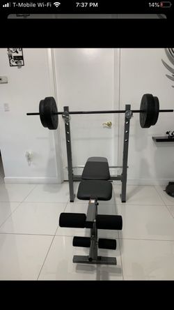 Weight bench bar and weights$225Davie, FL