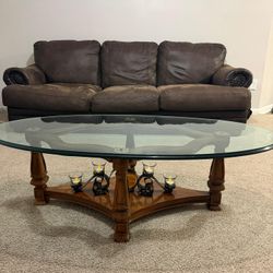 Vintage Oval Glass Top Coffee Table with Candelabra Base(heavy glass tap ) Rare / One of a kind$500Orlando, FL