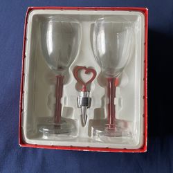 NWT Red Stem Wine Glass Set with Heart Bottle Stopper$10Alafaya, FL