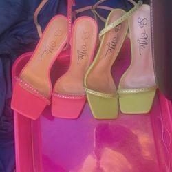 Two Pairs Women’s Size 7.5 So Me Neon Colored Bright Rhinestone Strap High Heels$45Pt Orange, FL