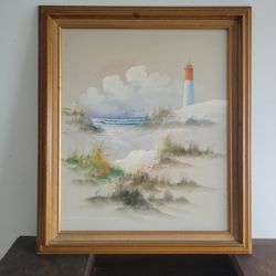 Oil painting ocean beach scene solid wood frame$30Pt Orange, FL