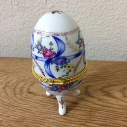 Vintage Hinged Porcelain Floral Print Egg on 3 Legs Trinket Ring Jewelry Box$12Sanford, FL