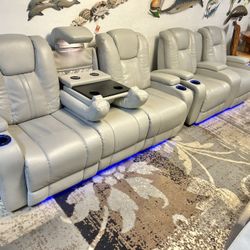 Like New Leather Electric Dual Reclining Couch And Loveseat With Electric Headrests And Dual USB And Wireless Charging Stations And Led Lighting $1,500South Daytona, FL