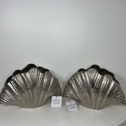 (Set of 2) Metal Sliver Seashell Beverage Cooler / Vase New with tags $25Oviedo, FL