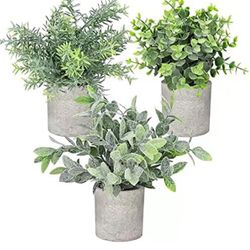 Artificial Plants Set of 3 Fake Eucalyptus Rosemary Grass in Grey Pots for Farmhouse Home décor Indoor$15Oviedo, FL