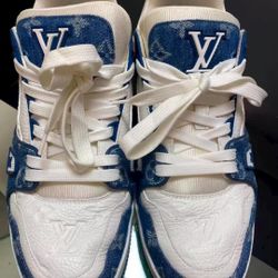 Louis Vuitton Trainer Denim Leather Casual Low-top Fashion Sneaker Blue and White Color $500Orlando, FL