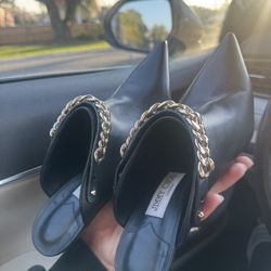 Jimmy Choo Black Leather Gold Chain Mules$50Orlando, FL