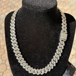 Iced Out Cuban Link Chain 15mm CZ Stones Silver 20” Brass$140Orlando, FL