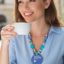 Handmade Turquoise-Color Blue Resin Dolphin Pendant Beaded Black Cord Necklace. This item is a handmade dolphin pendant necklace featuring blue and tu$25Daytona Beach, FL
