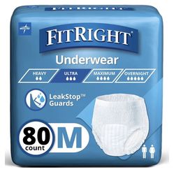FitRight Ultra Unisex Adult Protective Underwear, Medium Size for Waist 28-40 Inches, Heavy Absorbency, Dependable Incontinence Protection, 80 Count ($30Fort Lauderdale, FL